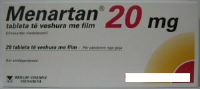 Lexo më shumë Shfaq farmacite Shfaq distributorëtmenartan® 10, 20, 40mg tableta bën pjesë në grupin e barnave të quajtur antagonistë të receptorëve të angiotenzines II. Angiotenzina II është një substancë natyrale e organizmit të njeriut me veprim ngushtues mbi enët e gjakut. Ngushtimi i enëve vështirëson kalimin e gjakut dhe rrit presionin e tij. Menartan® pengon veprimin e angiotenzines II dhe për rrjedhojë, enët e gjakut zgjerohen dhe presioni i gjakut ulet....